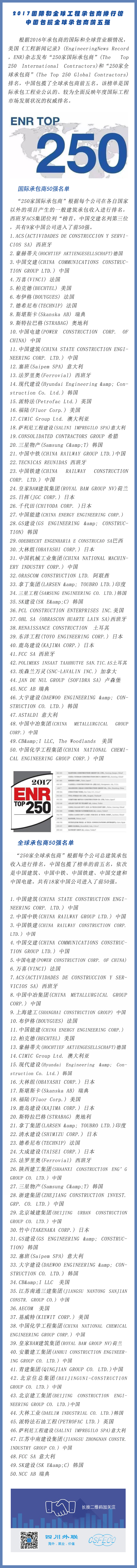 2017國(guó)際和全球工程承包商排行榜